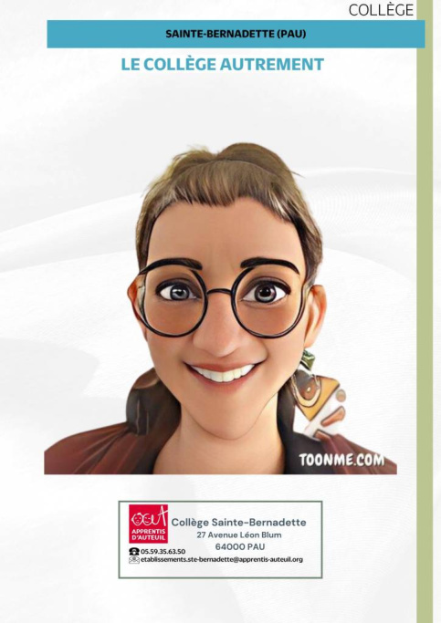 Au collège Sainte-Bernadette d’Apprentis d’Auteuil, chacun est accueilli tel qu’il est, d’où qu’il vienne et quels que soient ses objectifs. Notre collège promeut la persévérance scolaire en ayant comme intention de permettre à chaque élève de s’emparer de son projet personnel. Soutenu par une équipe pluridisciplinaire professionnelle, formée à la différenciation pédagogique, à la coopération et à l’accueil de la diversité des élèves, l’établissement est un collège à taille humaine dans lequel chaque jeune peut exprimer son potentiel.